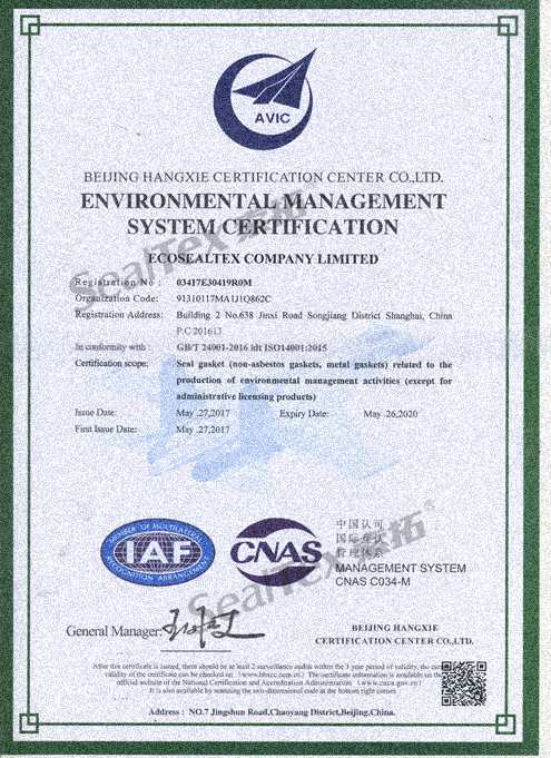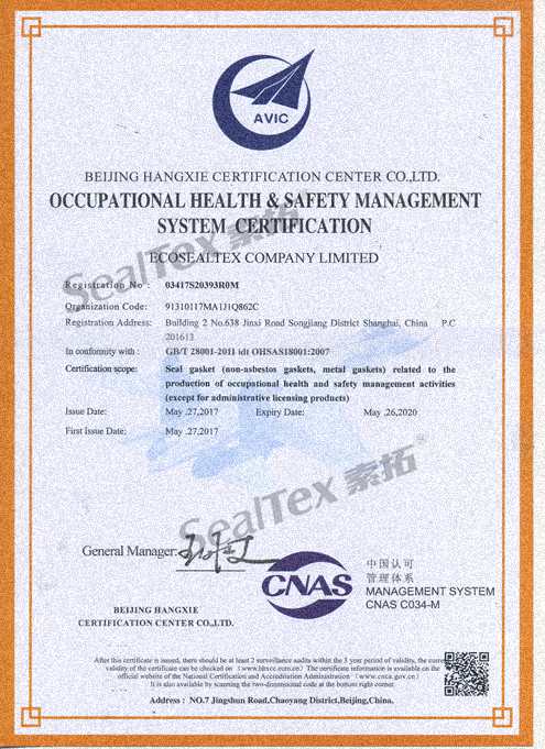 為了更好的推動“禁止使用石棉制品”進程、推進環(huán)保事業(yè)、樹立企業(yè)形象,我司于2017年通過了ISO14001環(huán)境管理體系及OHSAS18001職業(yè)健康安全管理體系的認(rèn)證并獲得認(rèn)證證書。